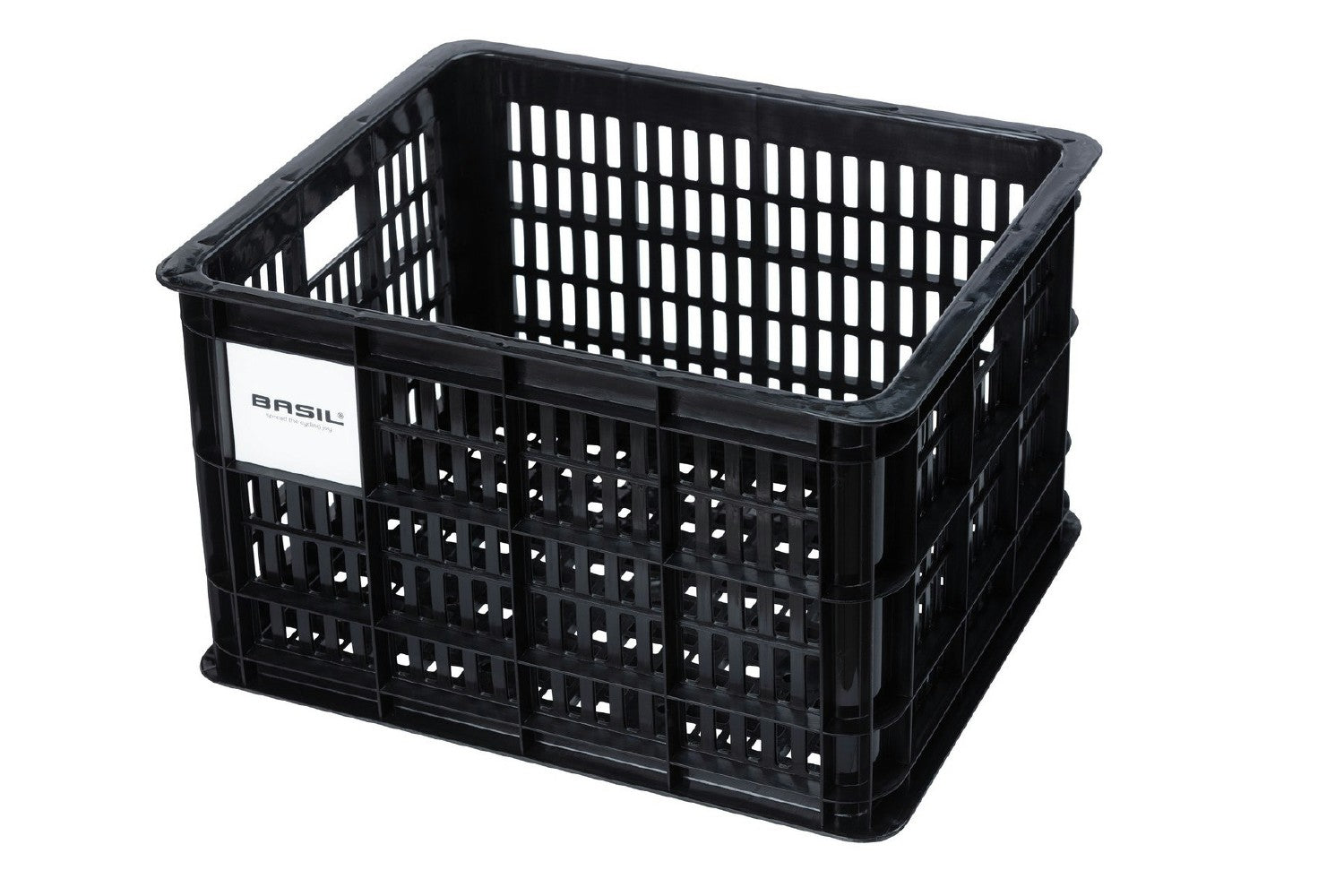 Basil L-size bicycle crate: a sleek black choice for both men’s and women’s bikes. Crafted from sustainable materials, this crate boasts a 40-litres capacity.