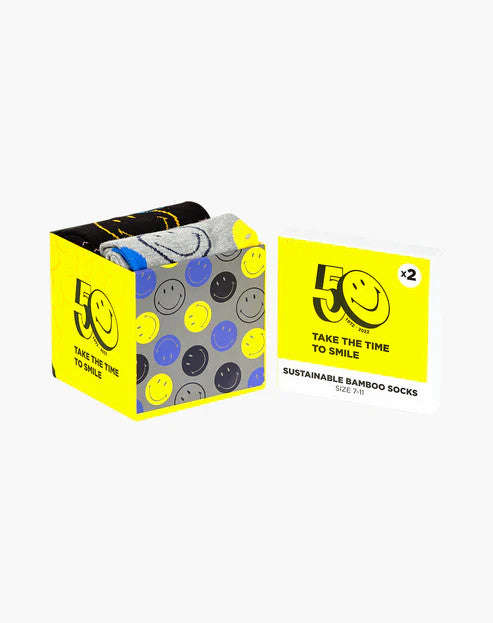 Bamboozld have teamed up with Smiley to bring you these limited-edition Smiley 2pk Gift box. We share the vision for a more environmentally friendly world and our new Smiley collection has been designed to remind people to take time to smile and share happy vibes. Made from sustainably sourced bamboo, Bamboozld socks are super soft and luxurious for all day comfort. Includes two pairs of Smiley design crew socks packaged in a matching Gift Box.