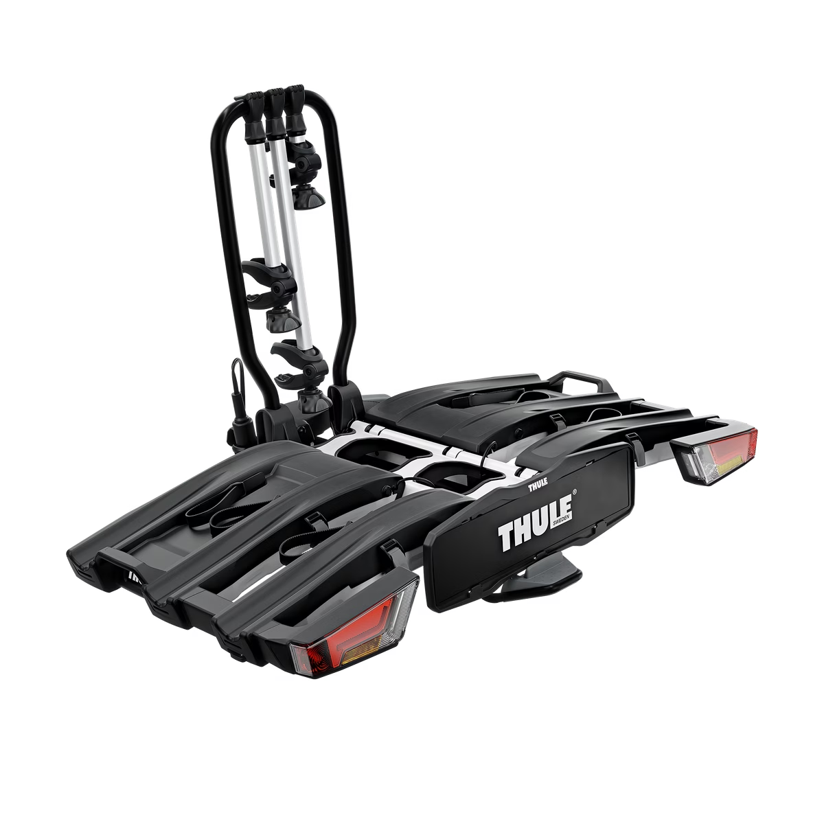 The Thule Easy Fold XT E-Bike Carrier is a fully-foldable rear-mounted rack with room for 3 bikes. It is capable of carrying heavy loads and therefore is suitable for e-bikes and heavy mountain bikes. The EasyFold XT is all about convenience, as the bikes are easily mounted using detachable bike arms with lockable Thule AcuTight torque limiter knobs that lock at the optimal torque level. With wide spacing between bikes and adjustable pump buckles with extra long wheel straps for easy fastening of wheels, this rack can fit large bikes comfortably. This rack will enable you to carry 3 large bikes in a safe and secure manner, your bikes will be safe from damage and theft with this intelligently designed bike rack from Thule.