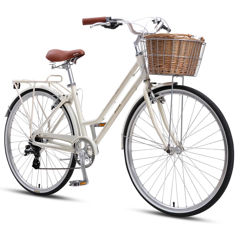 Define your style with the XDS Loretta retro bike. Make a statement with vibrant colours, colour matched fenders, front basket and a rear rack. Stay comfortable with a low step-through and lightweight alloy frame. Ride smart with a 7-Speed Shimano Altus Drivetrain, and reliable Tektro V-Brakes.